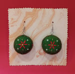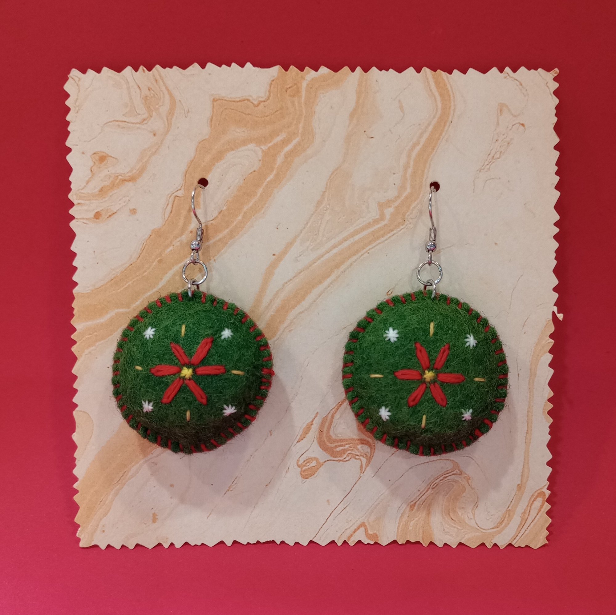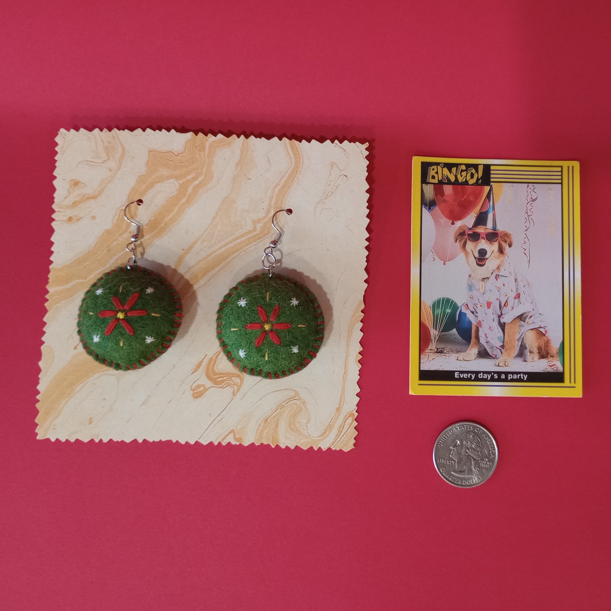I designed, hand-sewed, and hand-embroidered these semi-magical, fabric art earrings featuring red flowers. The metal is stainless steel and hypoallergenic. These earrings are saturated with a mild, almost ineffective charm that will help the wearer come across a smiling dog. The charm will also allow the wearer to discover a new favorite flavor.