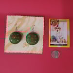 In one of the photos, you can see how large the earrings are compared to a quarter as well as your average party dog playing card.