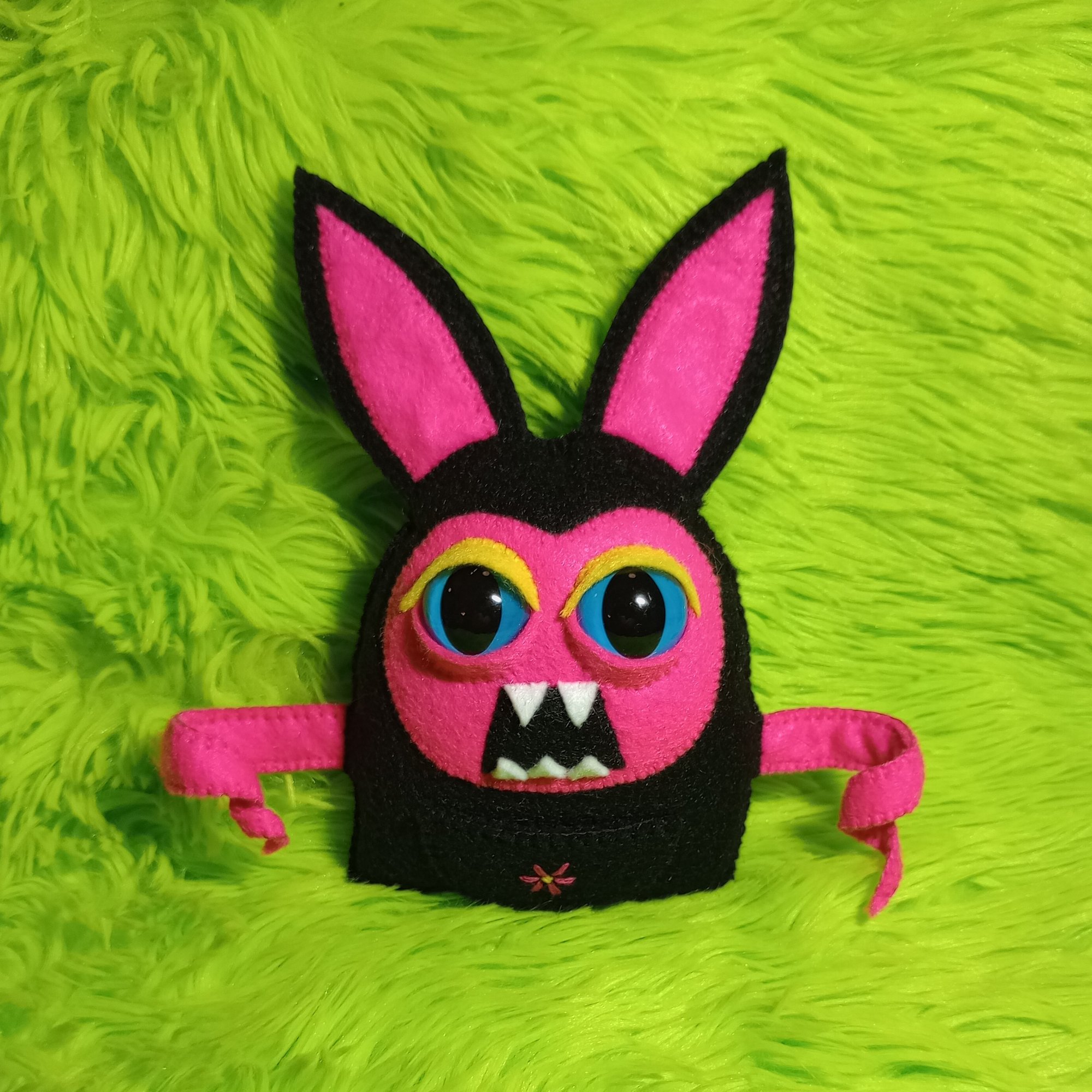 Meet my fabric art creature Sweet Bernadette the Extremely Normal Rabbit. I designed and hand-sewed her. In spite of the facts that she can pierce the fabric of space-time with her ears and she can make comets explode with a thought, Bernadette insists that she's an extremely normal rabbit. She enjoys devouring ectoplasmic carrots as much as the next bunny. She also likes telling ghost stories by the campfire, listening to podcasts about bad movies, and collecting shells to use for crafts.